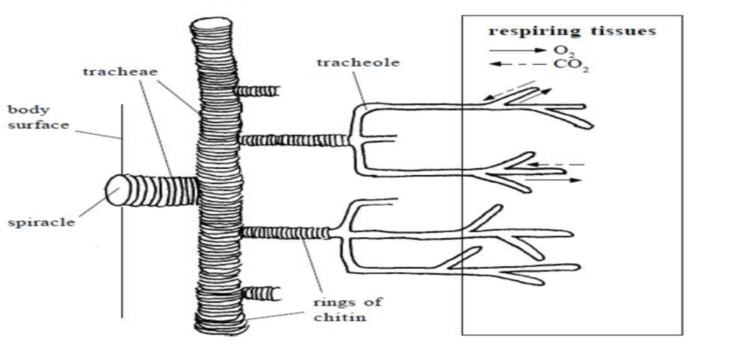 6. How is the tracheal system depicted in a diagram? A tracheal respiration diagram typically shows the spiracles, tracheae, and tracheoles.
